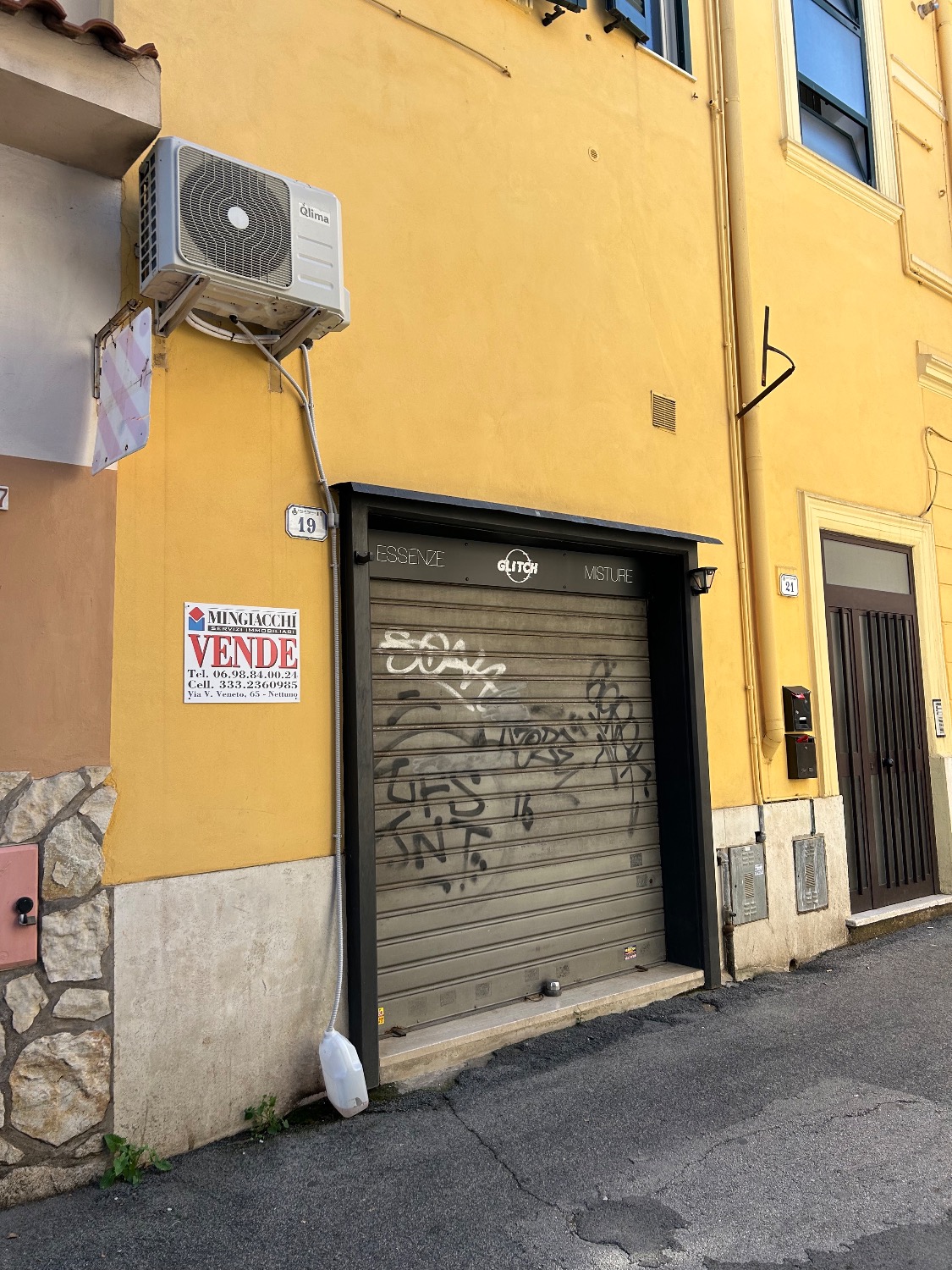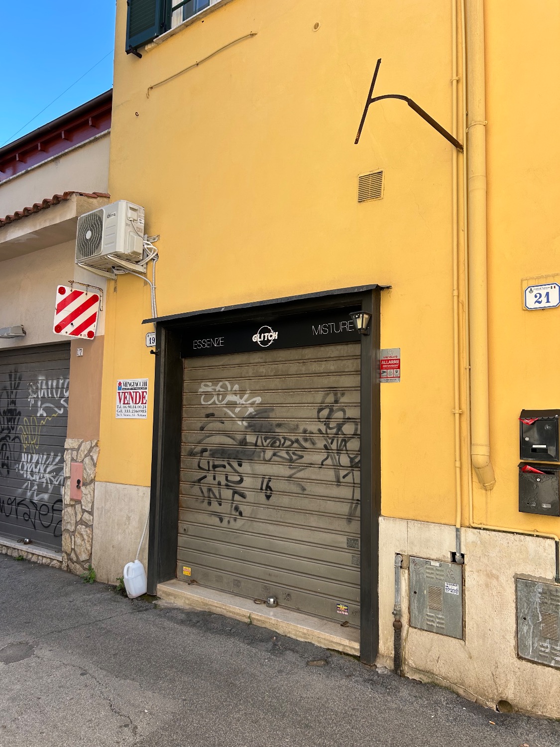 L’immobile è provvisto di grate antintrusione su Piazza Valeri e da una serranda su Via della Fontana.
