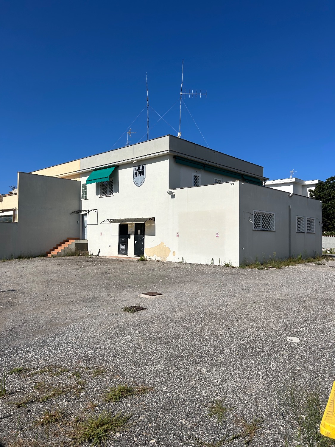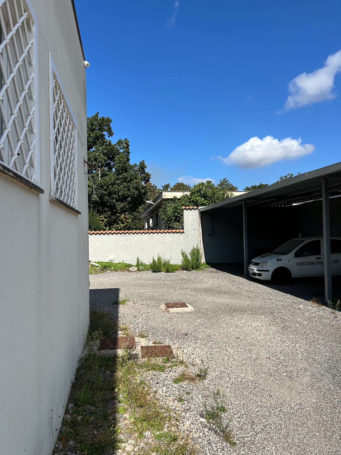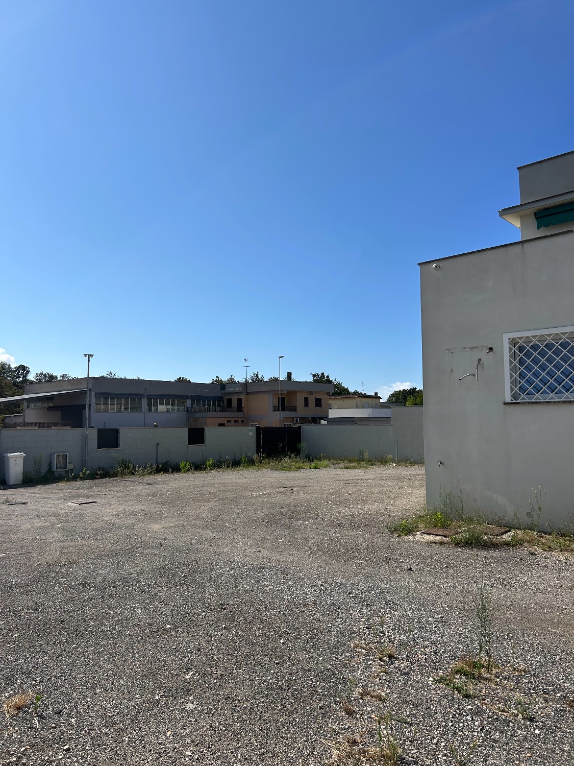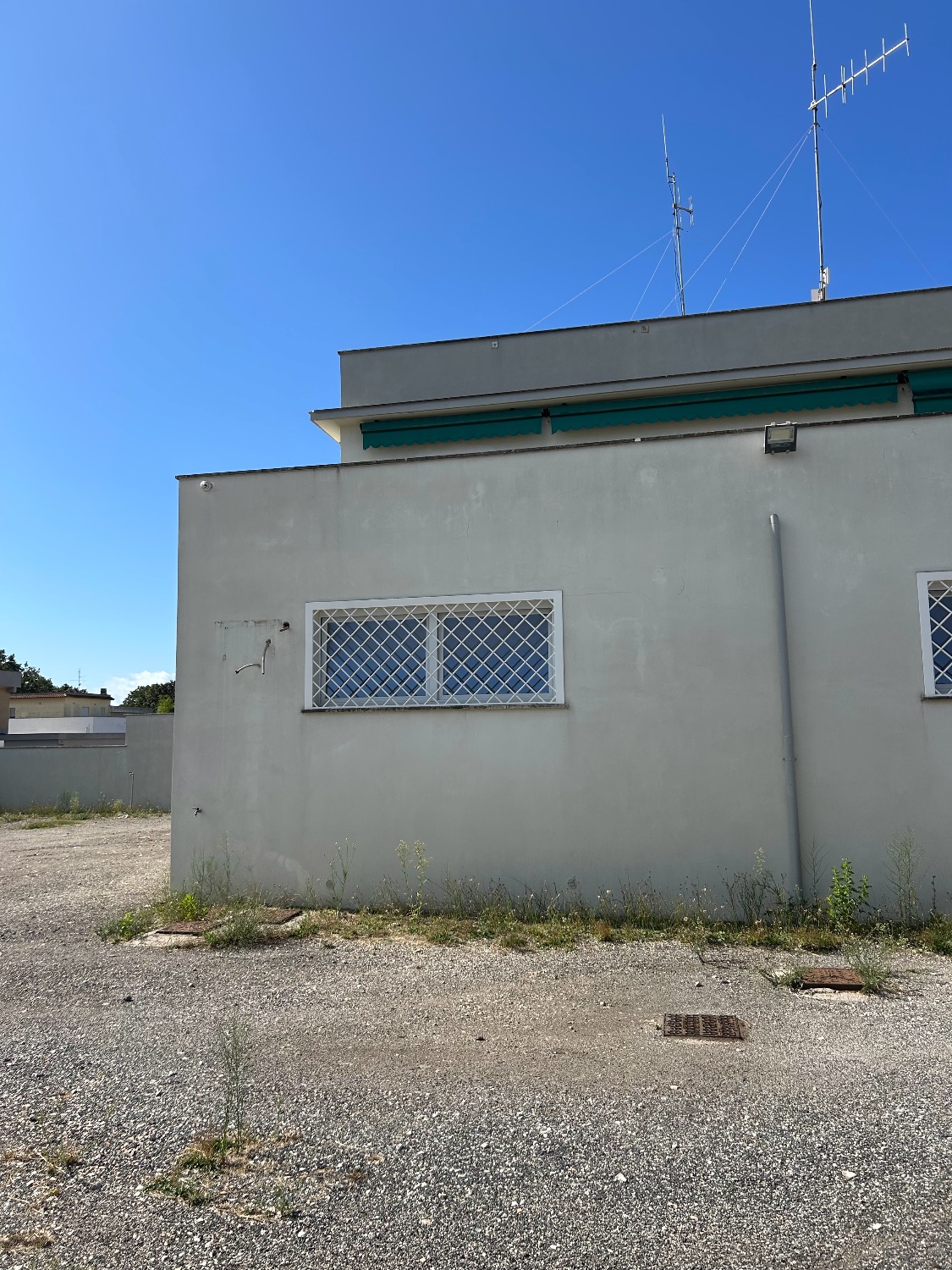 - Piano Terra: Ampio Piazzale esclusivo interno alla proprietà di circa 800Mq con 2 accessi carrabili (1 solo carrabile con cancello scorrevole motorizzato e 1 con cancelletto pedonale). Completa la proprietà anche il terreno fronte strada di 80Mq che attualmente è parte a verde (dove potrebbe essere istallata una insegna pubblicitaria) e una parte a cemento/asfalto (dove c’è l’accesso al cancello carrabile scorrevole motorizzato e la parte a cemento invece destinata a parcheggio per 2 posti auto. Il locale al suo interno, della dimensione di 190Mq totali, è composto da un ampio ingresso, 3 comodi uffici, un bagno, oltre ad una stanza di sicurezza blindata con al suo interno un bagno, una sala tecnologica ed un sottoscala. Il tutto è stato impostato e costruito dall’ultimo affittuario, che svolgendo un’attività di videosorveglianza e vigilanza, aveva necessità di una camera di sicurezza blindata dove al suo interno c’era una sala controllo con monitor e centralino oltre ad una sala registrazioni. Presenti nella stanza di sicurezza 2 condizionatori caldo/freddo.