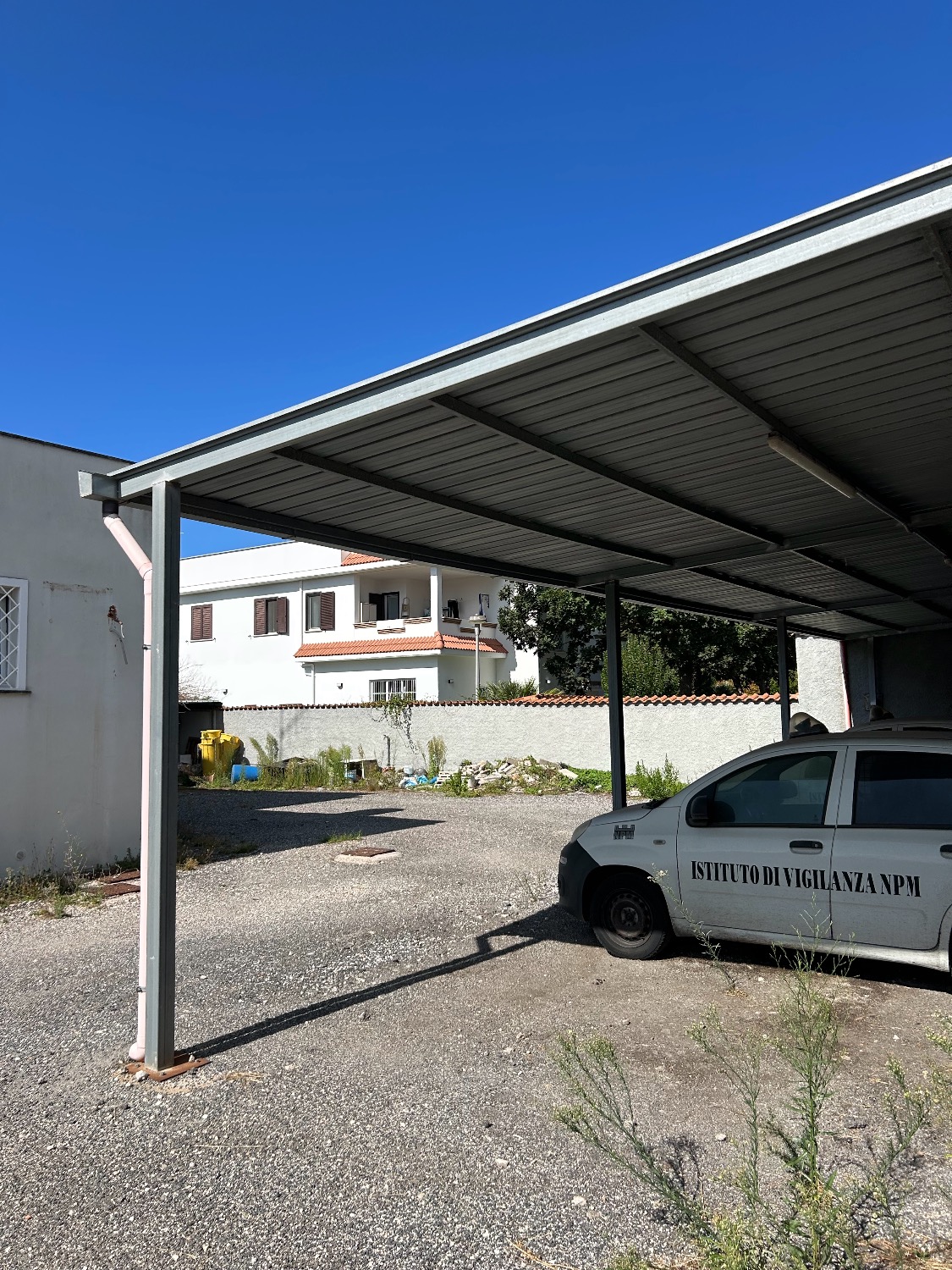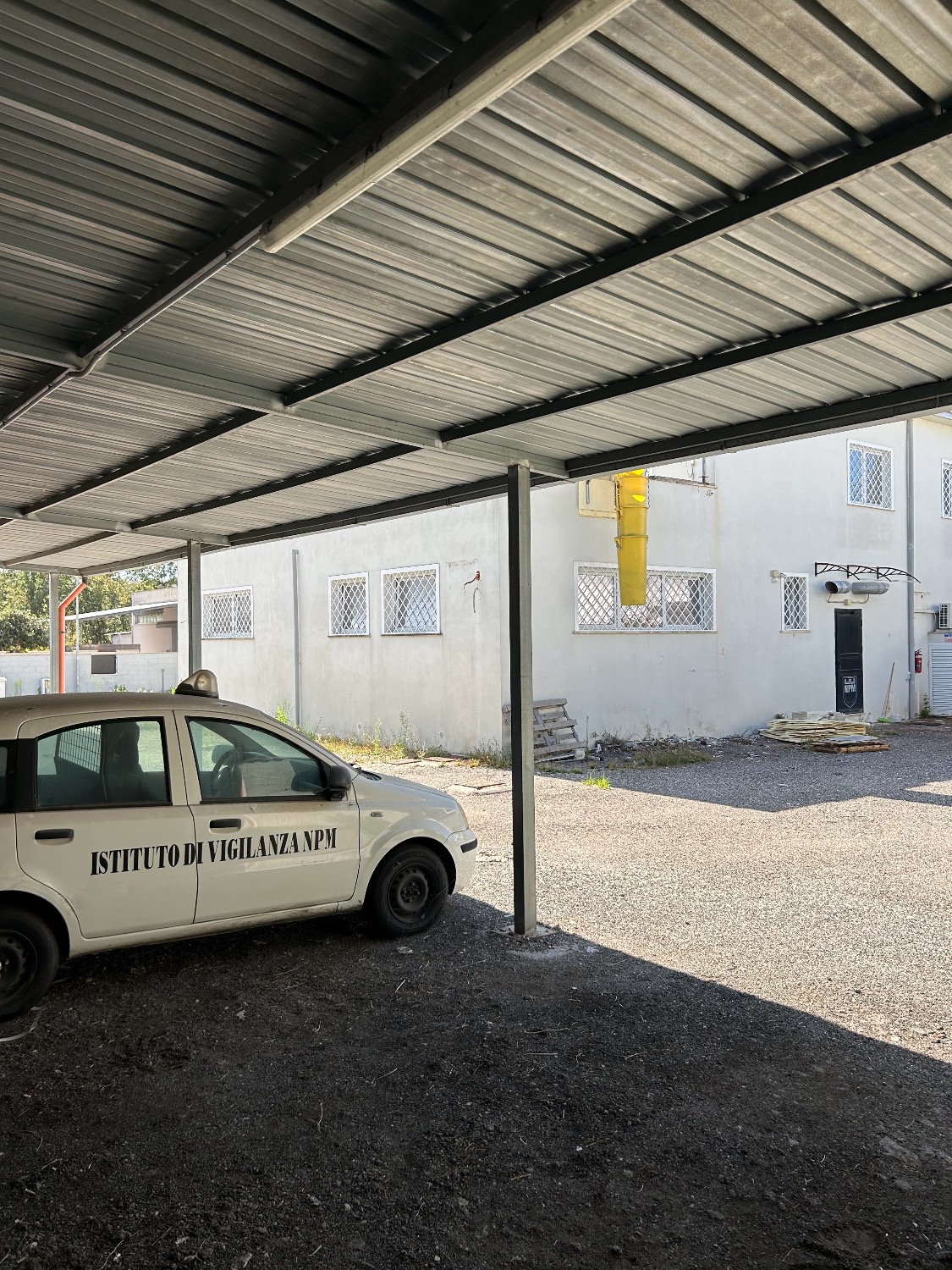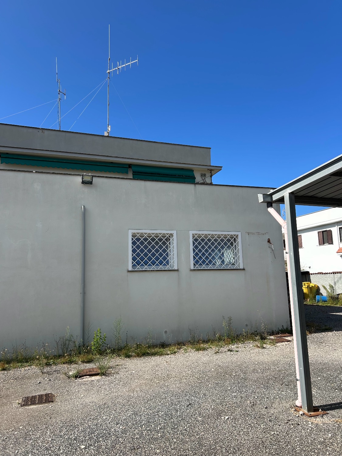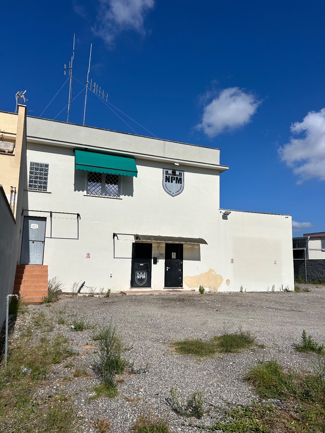 - Piano Terra: Ampio Piazzale esclusivo interno alla proprietà di circa 800Mq con 2 accessi carrabili (1 solo carrabile con cancello scorrevole motorizzato e 1 con cancelletto pedonale). Completa la proprietà anche il terreno fronte strada di 80Mq che attualmente è parte a verde (dove potrebbe essere istallata una insegna pubblicitaria) e una parte a cemento/asfalto (dove c’è l’accesso al cancello carrabile scorrevole motorizzato e la parte a cemento invece destinata a parcheggio per 2 posti auto. Il locale al suo interno, della dimensione di 190Mq totali, è composto da un ampio ingresso, 3 comodi uffici, un bagno, oltre ad una stanza di sicurezza blindata con al suo interno un bagno, una sala tecnologica ed un sottoscala. Il tutto è stato impostato e costruito dall’ultimo affittuario, che svolgendo un’attività di videosorveglianza e vigilanza, aveva necessità di una camera di sicurezza blindata dove al suo interno c’era una sala controllo con monitor e centralino oltre ad una sala registrazioni. Presenti nella stanza di sicurezza 2 condizionatori caldo/freddo.