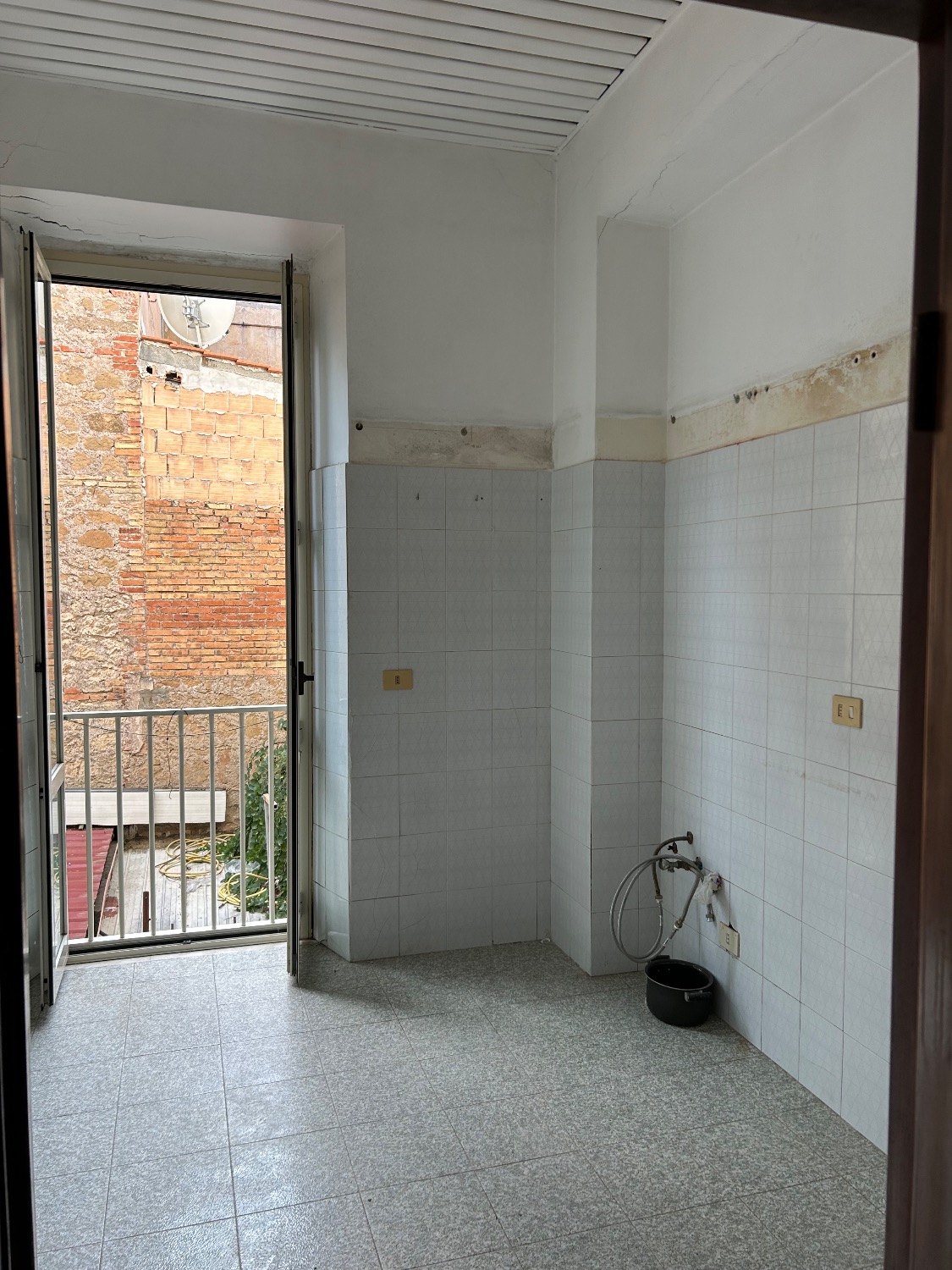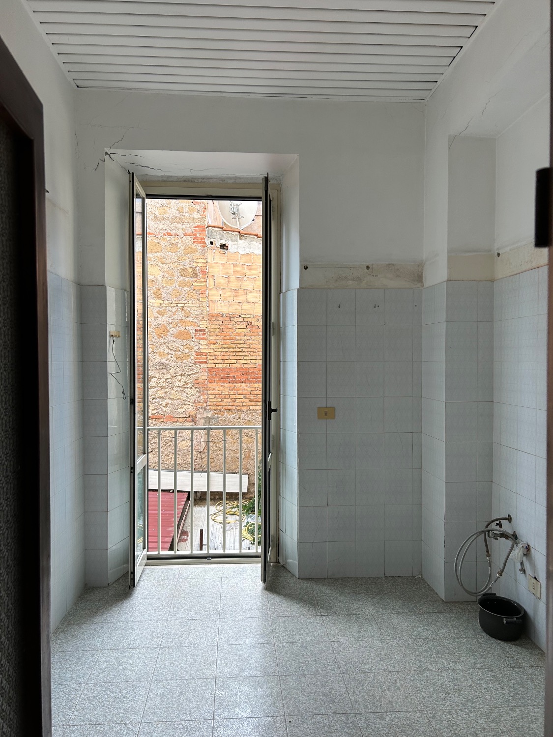 Internamente l’appartamento è composto da un Ingresso/disimpegno, una cucina abitabile con porta finestra. Un bagno finestrato con Lavandino, WC, Bidet e Doccia.