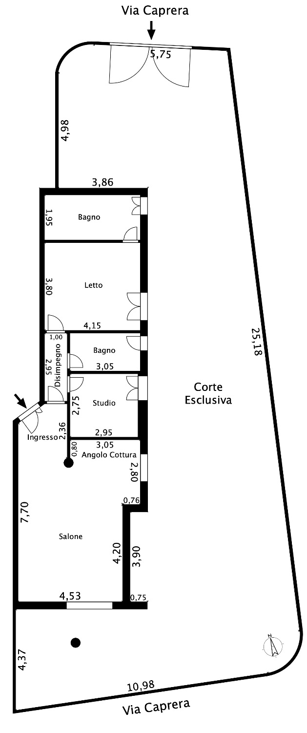 La parte pavimentata è anche parzialmente riparata dagli ampi terrazzi/balconi dell’appartamento sovrastante.