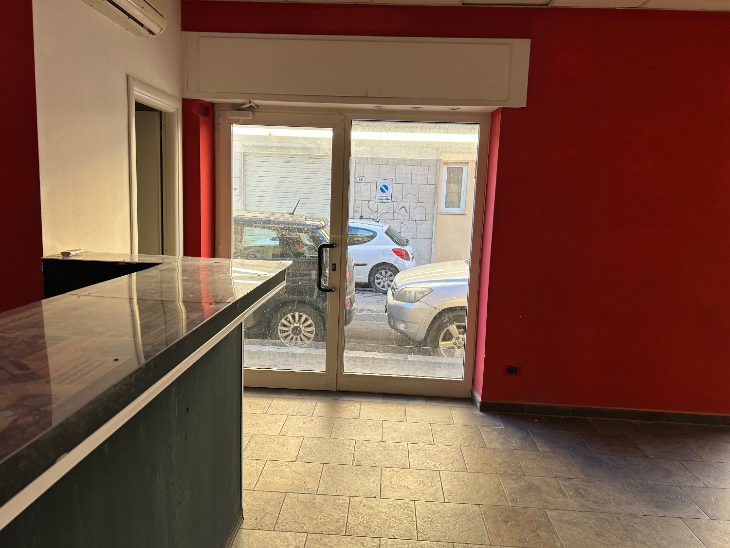 La parte anteriore ha una grande vetrina fissa oltre ad un’altra vetrina in parte fissa e in parte porta d’accesso. Inoltre la parte anteriore è fornita anche lateralmente, direttamente su strada, da una finestra con persiana blindata, mentre nel retro troviamo una vetrina singola fissa.