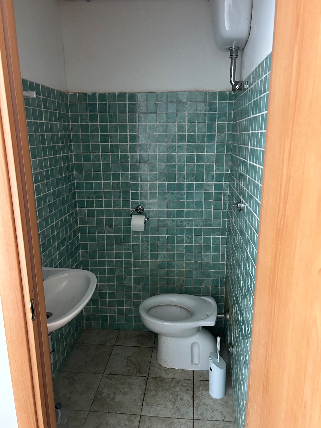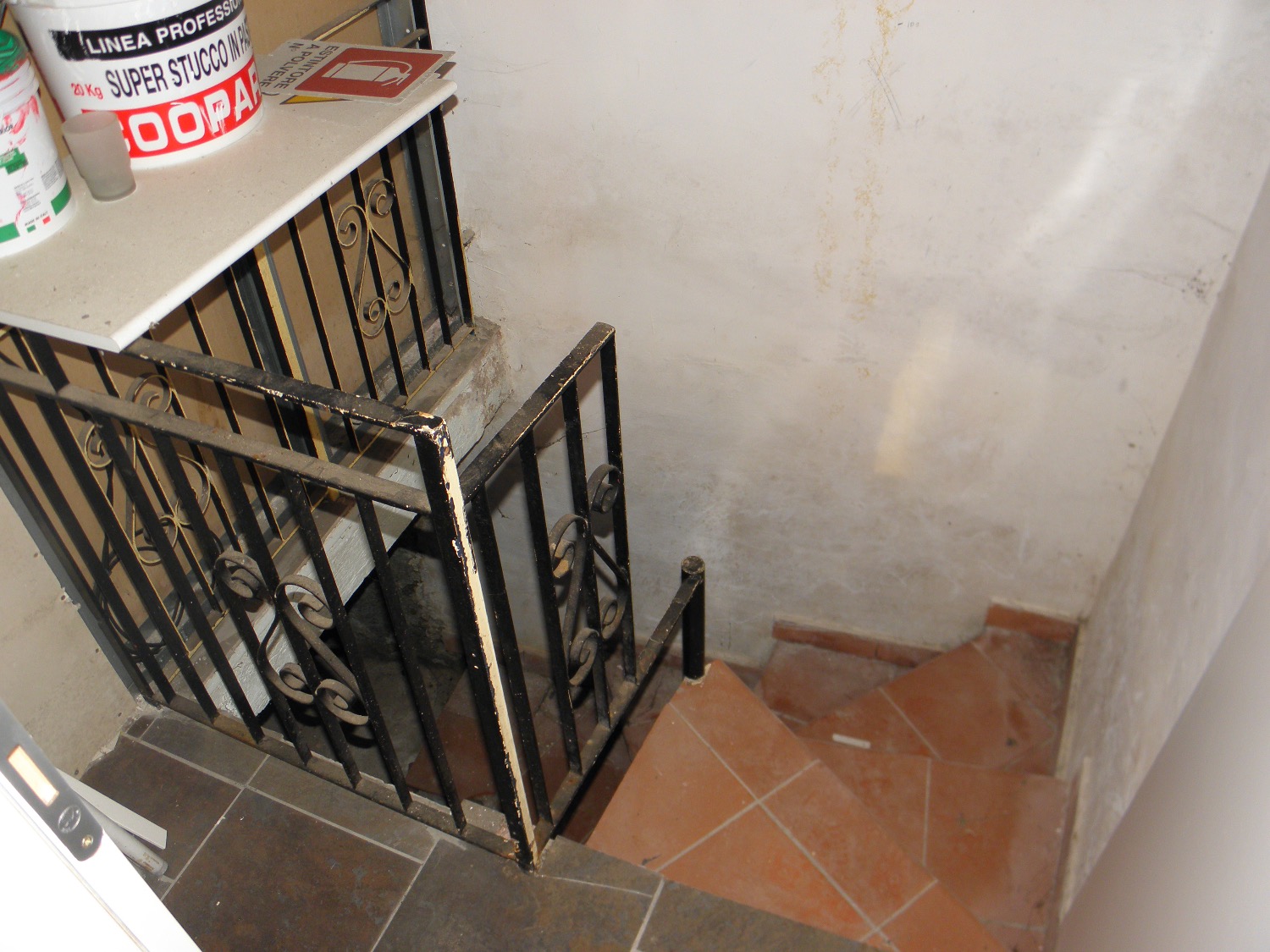 Il locale è composto da un grande ambiente anteriore con un ampio passaggio che porta al retro locale, dove è ubicato il bagno. Dalla parte anteriore del locale, tramite una scala a chiocciola in metallo e separata da una porta, si accede al magazzino sito al Piano Interrato.